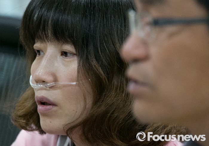 (서울=포커스뉴스) 가습기 살균제 피해자와 가족모임의 윤정애(왼쪽) 씨가 25일 오후 서울 여의도 국회 의원회관에서 박지원 국민의당 원내대표와 면담 중 강찬호 대표의 발언을 듣고 있다.