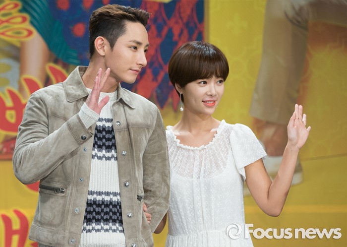 (서울=포커스뉴스) 25일 오후 서울 마포구 MBC상암사옥에서 열린 MBC 수목드라마 '운빨로맨스' 제작발표회에 참석한 배우 이수혁(왼쪽)과 황정음이 포토타임을 갖고 있다.