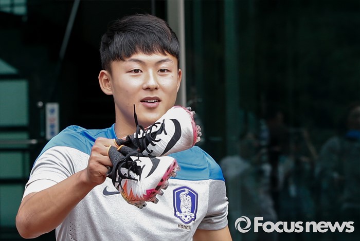 (파주=포커스뉴스) 이승우(18, 바르셀로나 후베닐A)가 25일 오후 경기도 파주 NFC에서 진행된 U-18(18세 이하) 축구대표팀 소집 훈련에 참석하고 있다.