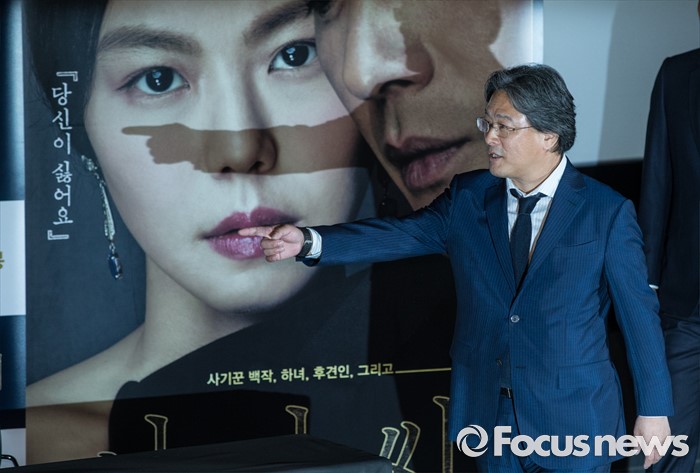 (서울=포커스뉴스) 25일 오후 서울 성동구 왕십리 CGV에서 열린 영화 '아가씨' 언론시사회에 참석한 박찬욱 감독이 자리를 향해 이동하고 있다.