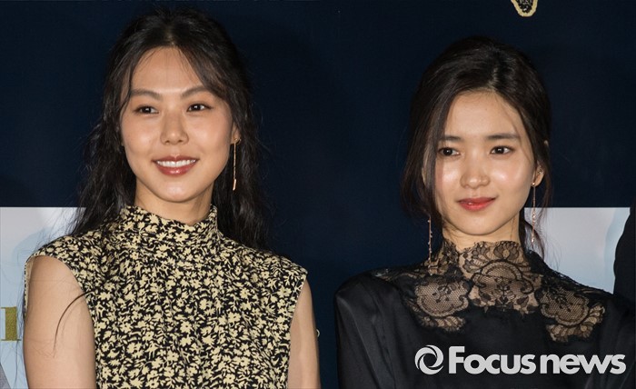 (서울=포커스뉴스) 25일 오후 서울 성동구 왕십리 CGV에서 열린 영화 '아가씨' 언론시사회에 참석한 배우 김민희(왼쪽)와 김태리가 포토타임을 갖고 있다.