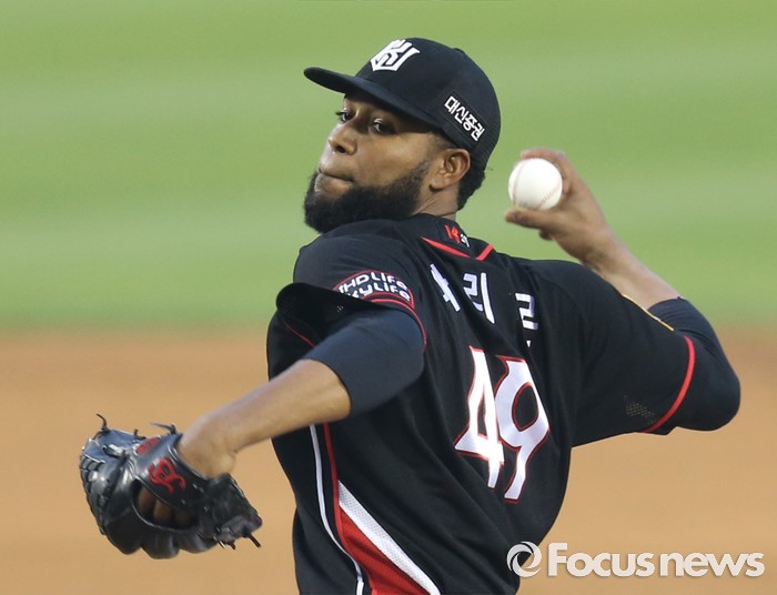 (서울=포커스뉴스) 25일 서울 잠실구장에서 열린 2016프로야구 kt-두산 경기에서 1회말 kt 선발투수 마리몬이 투구하고 있다.