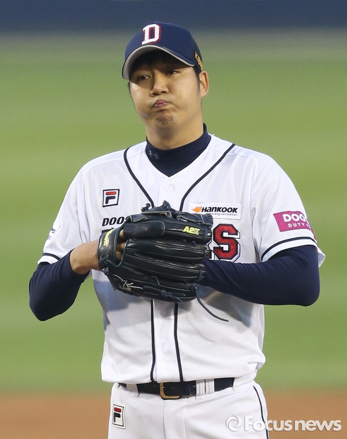 (서울=포커스뉴스) 25일 서울 잠실구장에서 열린 2016프로야구 kt-두산 경기에서 두산 선발투수 장원준이 1회초 3타자 연속 안타를 맞고 실망스런 표정을 짓고 있다.