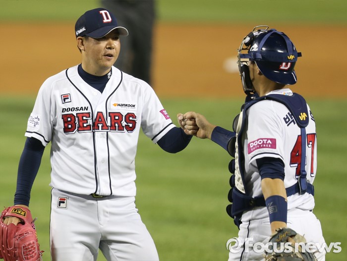 | △ 세이브 따낸 이현승과 양의지 |