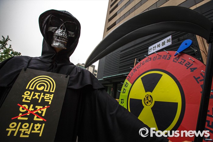 (서울=포커스뉴스) 26일 오전 서울 종로구에 위치한 광화문 KT빌딩 앞에서 그린피스가 주최하는 '핵없는 사회를 위한 공동 행동, 탈핵 시민 만민공동회' 퍼포먼스가 열리고 있다.