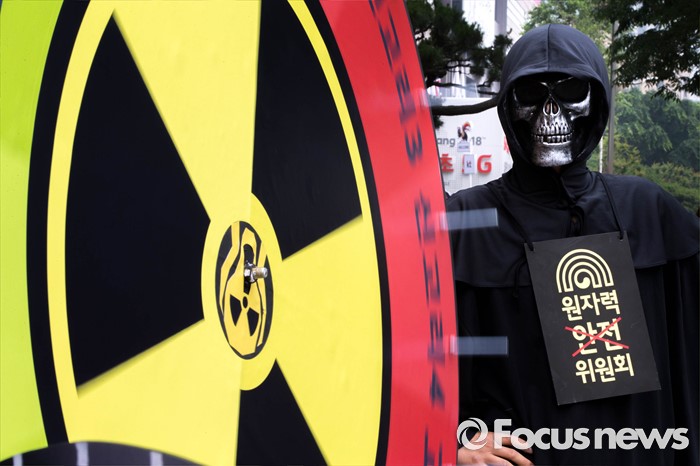 (서울=포커스뉴스) 26일 오전 서울 종로구에 위치한 광화문 KT빌딩 앞에서 그린피스가 주최하는 '핵없는 사회를 위한 공동 행동, 탈핵 시민 만민공동회' 퍼포먼스가 열리고 있다.
