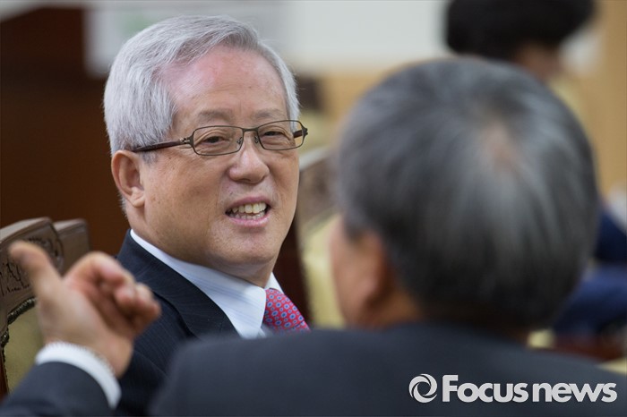 (서울=포커스뉴스) 송위섭(왼쪽) 노사정위원회 노동시장구조개선특위 위원장과 이동응 한국경영자총협회 전무가 26일 오전 서울 종로구 정부서울청사 내 노사정 대회의실에서 열린 노동시장구조개선특별위원회 제26차 전체회의에 참석해 대화를 나누고 있다.