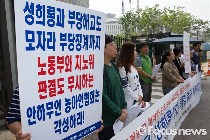 (세종=포커스뉴스) 26일 오전 세종시 정부세종청사 보건복지부 앞에서 당진수화통역센터 성희롱 사건 해결을 위한 충남지역 대책위원회 구성원들이 성희롱 사건 해결을 촉구하는 기자회견을 하고 있다.