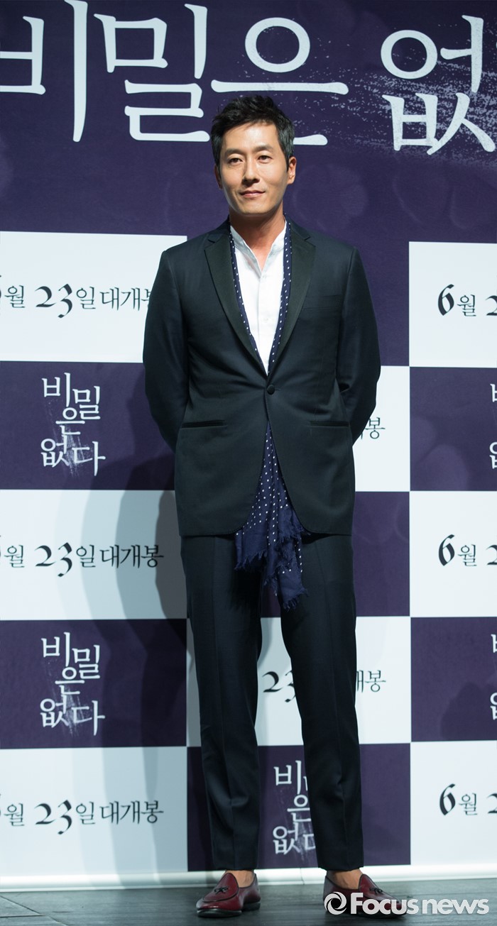 (서울=포커스뉴스) 26일 오전 서울 강남구 압구정 CGV에서 열린 영화 '비밀은 없다' 제작보고회에 참석한 배우 김주혁이 포토타임을 갖고 있다.
