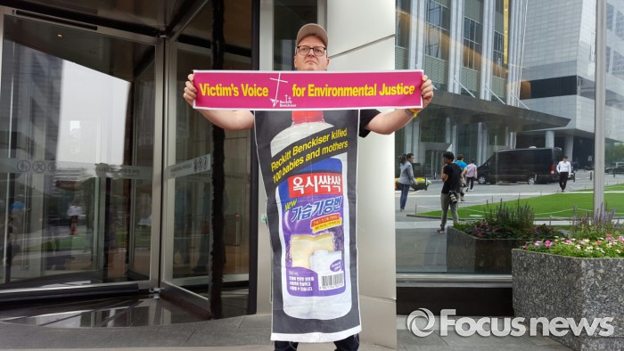 (서울=포커스뉴스) 지난 17일 '환경부 장관 퇴진' 1인 시위에 참가한 영국인 앤드류(54)씨가 이번엔 옥시레킷벤키저의 사과를 촉구했다.