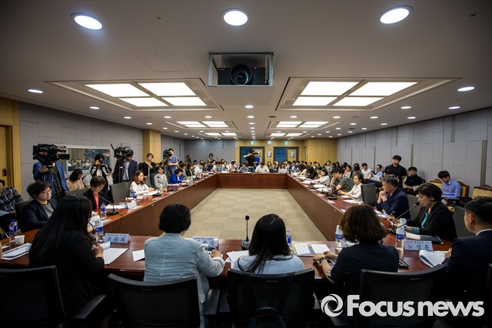 (서울=포커스뉴스) 26일 오후 서울 여의도 국회의원회관에서 열린 '강남역 여성 살인사건의 원인과 대책 긴급 토론회'에 더불어민주당 의원 및 당선자를 비롯한 토론자들이 참석하고 있다.