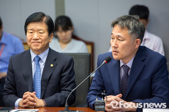 (서울=포커스뉴스) 표창원(오른쪽) 더불어민주당 당선자가 26일 오후 서울 여의도 국회의원회관에서 열린 '강남역 여성 살인사건의 원인과 대책 긴급 토론회'에 참석해 인사말을 하고 있다.