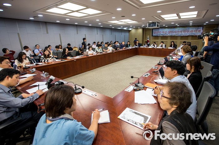 (서울=포커스뉴스) 26일 오후 서울 여의도 국회의원회관에서 열린 '강남역 여성 살인사건의 원인과 대책 긴급 토론회'에 더불어민주당 의원 및 당선자를 비롯한 토론자들이 참석하고 있다.