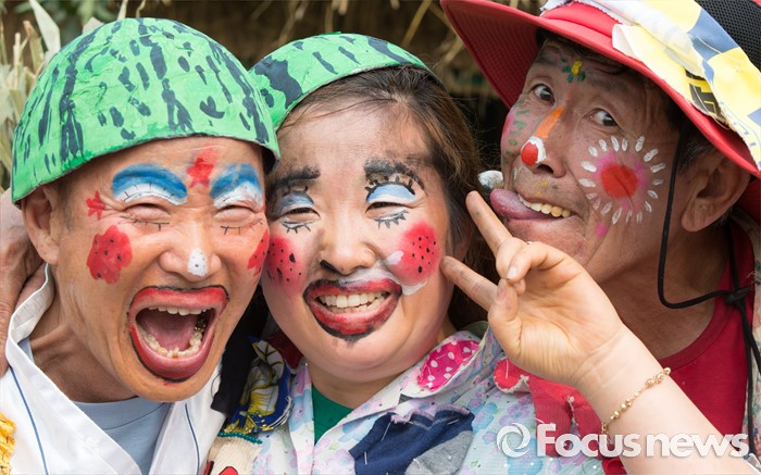 (음성=포커스뉴스) 26일 충북 음성군 음성읍 설성공원 일원에서 제17회 음성 품바축제가 열린 가운데 행사장 내 마련된 품바촌에서 품바분장을 한 참가자가 익살스런 표정으로 사진촬영을 하고 있다.