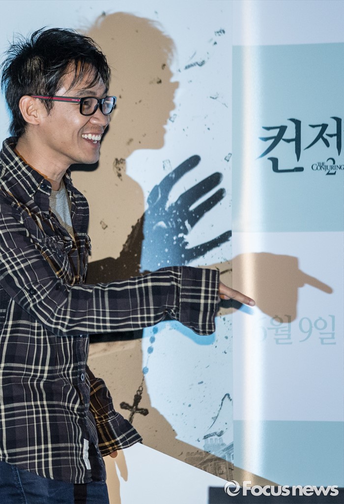 (서울=포커스뉴스) 26일 오후 서울 영등포구 여의도 CGV에서 영화 '컨저링2'의 제임스 완 감독이 기자간담회에 참석하고 있다.