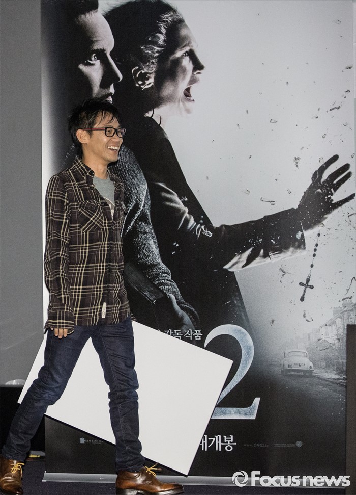 (서울=포커스뉴스) 26일 오후 서울 영등포구 여의도 CGV에서 영화 '컨저링2'의 제임스 완 감독이 기자간담회에 참석하고 있다.