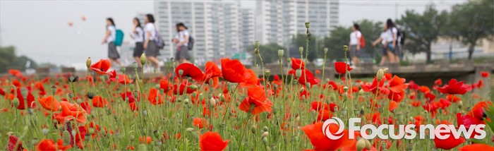 (음성=포커스뉴스) 26일 충북 음성군 음성읍 음성천변 일원에 양귀비가 만개해 있다.