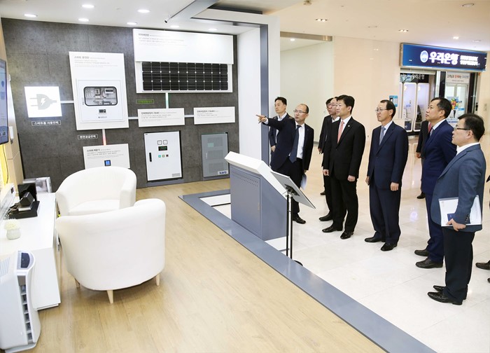 (나주=포커스뉴스) 우태희 산업통상자원부 2차관이 26일 전남 나주혁신도시에 위치한 한국전력공사 본사를 방문해, 김시호 한전 부사장의 안내로 재난종합상황실과 스마트그리드 홍보관 등 주요 시설을 둘러보고, 에너지신산업 시장 확대를 위해 한전이 추진 중인 투자 프로젝트(신산업 펀드 조성, 전기차 충전소, AMI 보급, 빅데이터센터 개설, 주파수 조정용 ESS 설치 등)의 진행 및 추진현황을 점검하고 있다. <사진제공=산업통상자원부>