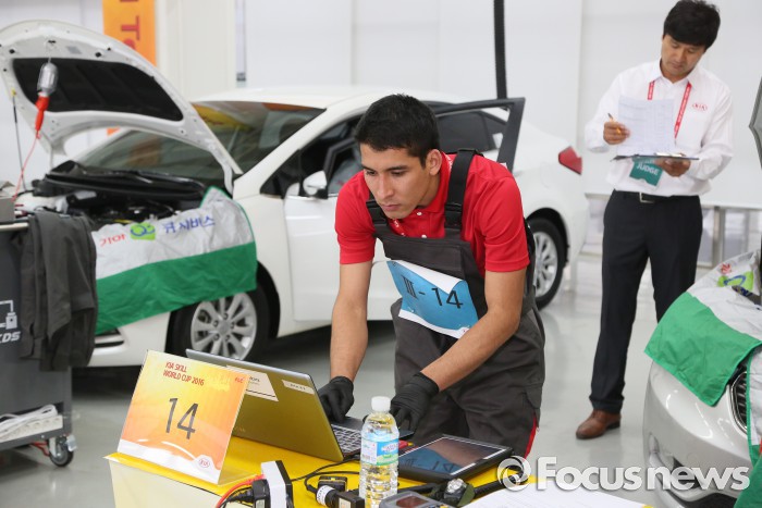 (서울=포커스뉴스) 기아자동차가 해외 우수 정비기술인력 육성을 위해 현대자동차그룹 남부 연수원(서울시 동작구 소재)과 JW 메리어트 호텔(서울시 서초구 소재)에서 이달 23일부터 4박 5일간 ‘제8회 전세계 정비사 경진대회(KIA Skill World Cup 2016)’를 진행했다.