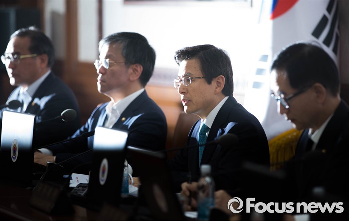 (서울=포커스뉴스) 27일 오전 서울 종로구 정부서울청사에서 열린 임시 국무회의에서 황교안 국무총리가 태극기를 바라보고 있다.