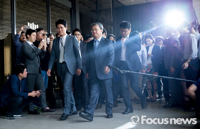 (서울=포커스뉴스) 정운호 네이처리퍼블릭 대표 로비 의혹에 연루된 홍만표 변호사가 27일 오전 서울중앙지방검찰청으로 출석하고 있다.