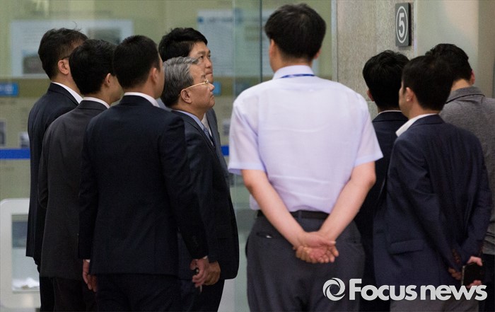 (서울=포커스뉴스) 정운호 네이처리퍼블릭 대표 로비 의혹에 연루된 홍만표 변호사가 27일 오전 서울중앙지방검찰청으로 출석하고 있다.
