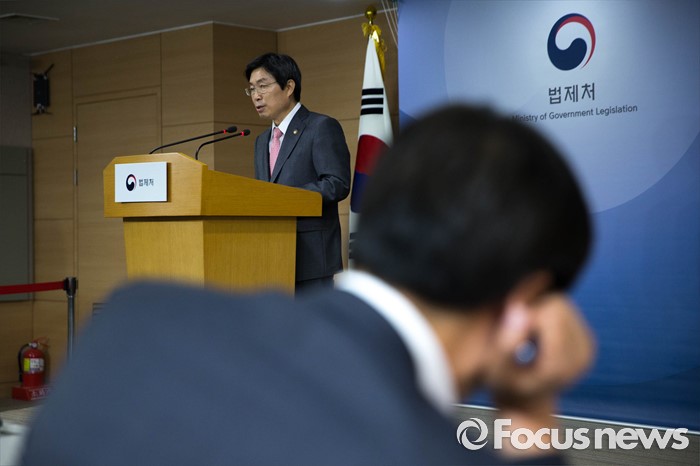 (서울=포커스뉴스) 27일 오전 서울 종로구 정부서울청사에서 열린 임시 국무회의가 끝난 뒤 제정부 법제처 차장이 '상시 청문회법' 관련 기자회견을 하고 있다. 제 법제처장은 "현안 조사 청문회를 신설하는 것은 헌법에 근거 없이 국회법에서 행정부 등에 대한 새로운 통제수단을 신설한 것으로 이는 국력분립 및 견제와 균형이라는 헌법정신에 부합하지 않는다"고 밝혔다.
