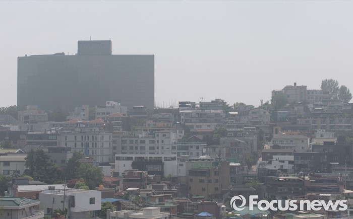 (서울=포커스뉴스) 미세먼지 농도가 나쁨단계를 보인 27일 오전 서울 용산구에서 바라본 서울 모습.