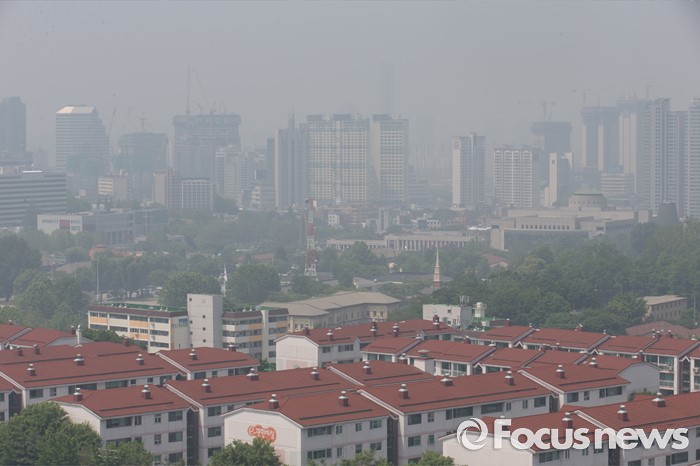 (서울=포커스뉴스) 미세먼지 농도가 나쁨단계를 보인 27일 오전 서울 용산구에서 바라본 서울 모습.