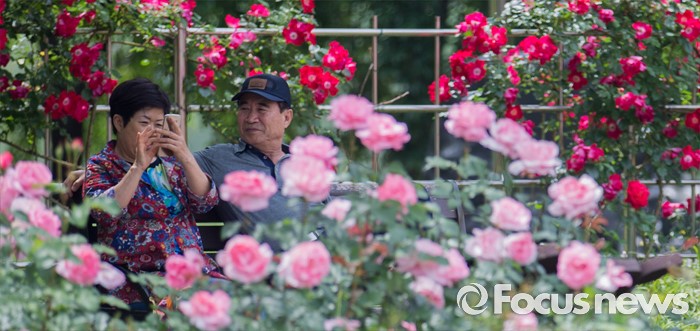 (서울=포커스뉴스) 27일 오후 경기도 고양시 일산호수공원에서 열린 2016 호수 장미 페스티벌을 찾은 시민들이 장미를 보며 즐거운 시간을 보내고 있다.