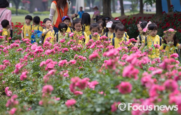 (서울=포커스뉴스) 27일 오후 경기도 고양시 일산호수공원에서 열린 2016 호수 장미 페스티벌을 찾은 시민들이 장미를 보며 즐거운 시간을 보내고 있다.