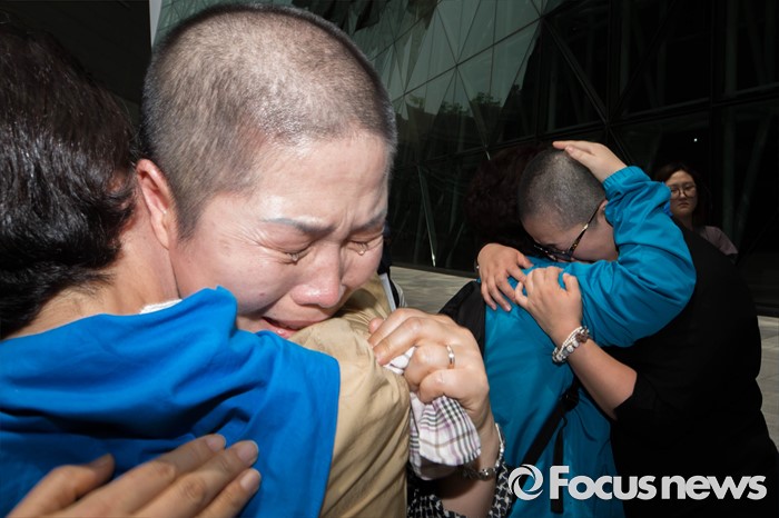 (서울=포커스뉴스)27일 오전 서울 중구 서울시청 앞에서 전국 장애인 부모연대와 서울특수학교학부모협의회 회원들이 발달장애인 정책 수립을 촉구하는 삭발식을 끝낸 뒤 서로 안고 울고 있다.