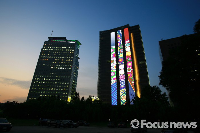 (서울=포커스뉴스) 금호아시아나그룹이 27일과 28일 양일간 오후 6부터 11시까지 서울 광화문 신문로에 위치한 금호아시아나 본관 ‘LED갤러리’에 ‘문살 단청’ 이미지를 상영한다.