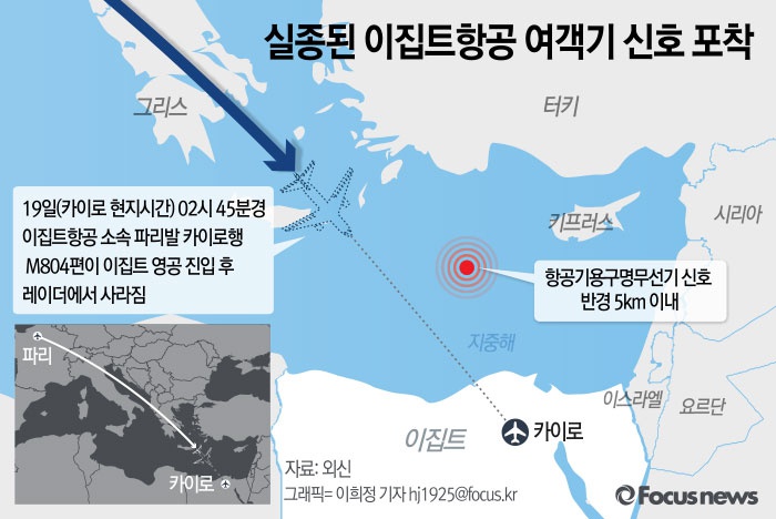 (서울=포커스뉴스) 이집트 국영 일간 알아람에 따르면 수색팀은 A320의 항공기용구명무선기(ELT· Emergency Locator Transmitter)로부터 나온 신호를 탐지했으며 이로써 수색범위를 반경 5㎞ 이내로 좁힐 수 있게 됐다고 미국 CNN이 26일 보도했다.