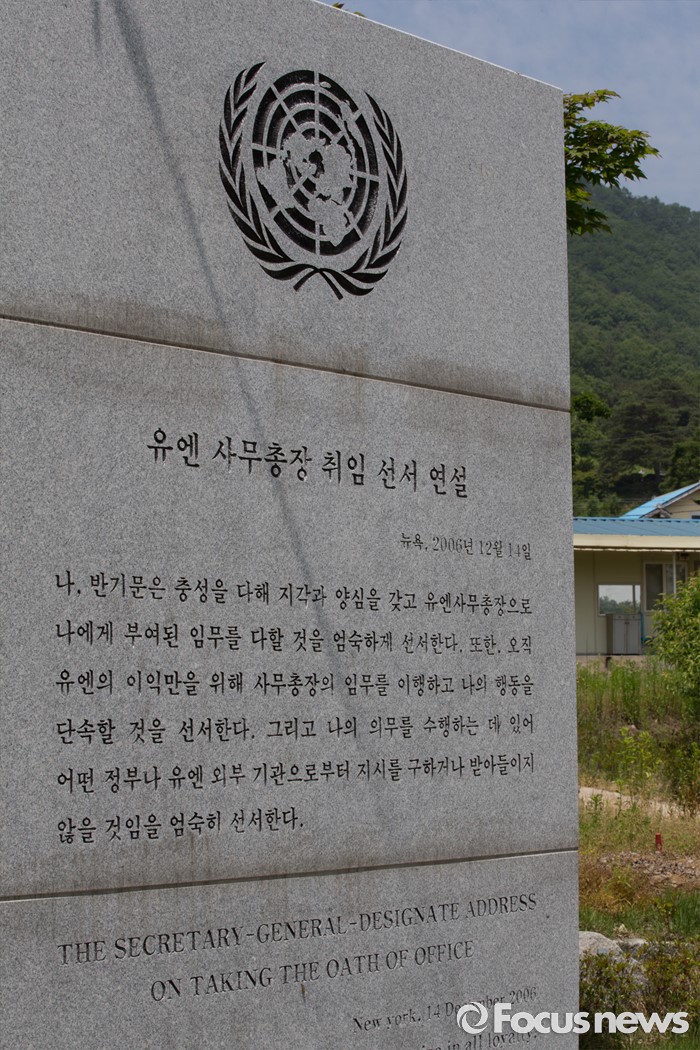 (음성=포커스뉴스) 27일 오후 충북 음성군 원남면 반기문 UN사무총장 생가 앞 취임 선서 연설.