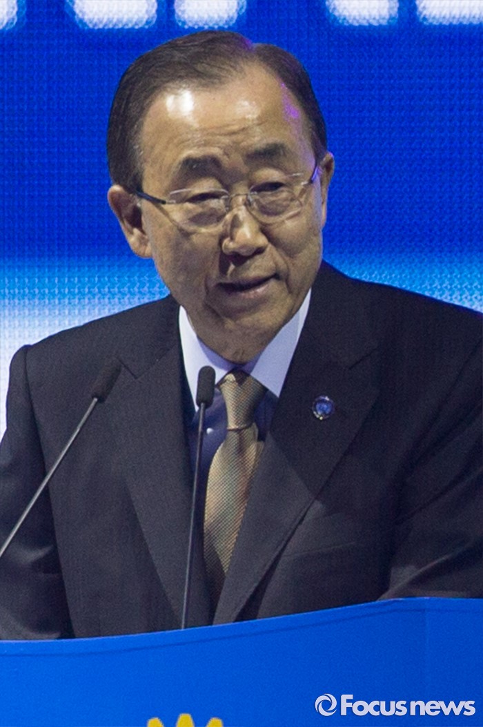(서울=포커스뉴스) 반기문 유엔 사무총장이 29일 오전 경기 고양시 킨텍스 제1전시장에서 열린 2016 국제로타리 세계대회에 참석해 기조연설 하고 있다.