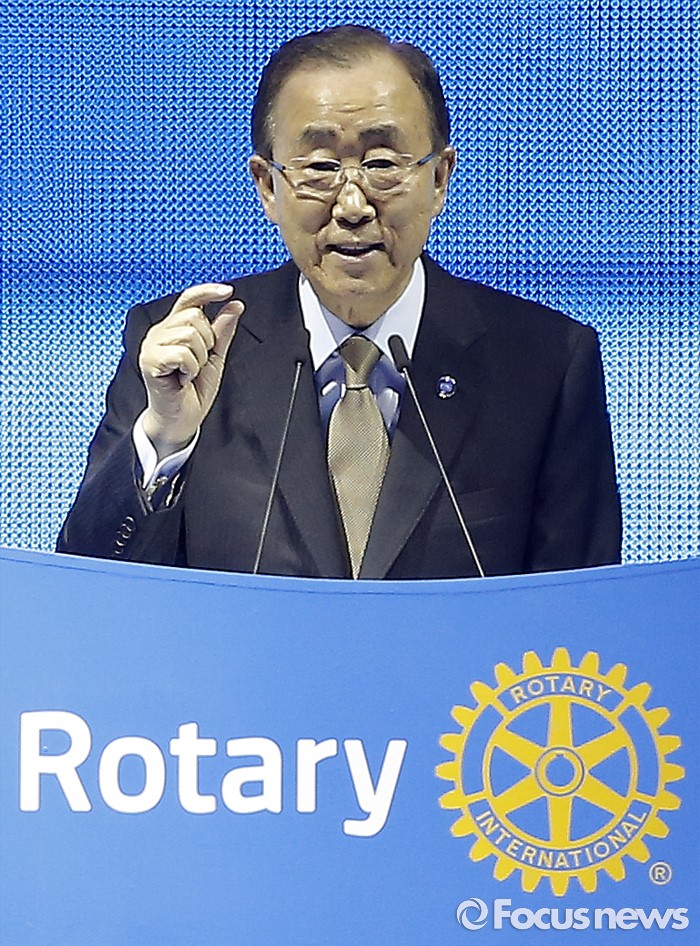 (서울=포커스뉴스) 반기문 유엔 사무총장이 29일 오전 경기 고양시 킨텍스 제1전시장에서 열린 2016 국제로타리 세계대회에 참석해 기조연설 하고 있다.
