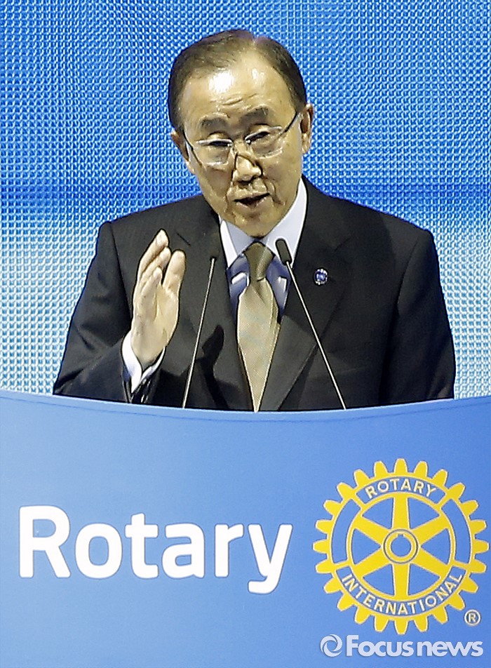 (서울=포커스뉴스) 반기문 유엔 사무총장이 29일 오전 경기 고양시 킨텍스 제1전시장에서 열린 2016 국제로타리 세계대회에 참석해 기조연설 하고 있다.