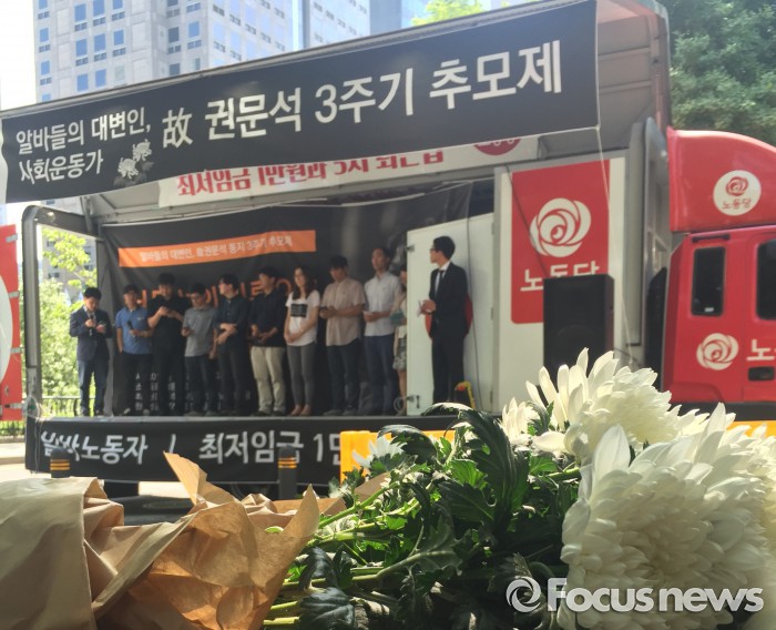 알바노조는 29일 오후 2시부터 서울 서린동 영풍문고 앞에서 '고(故) 권문석 3주기 추모제'를 열었다.
