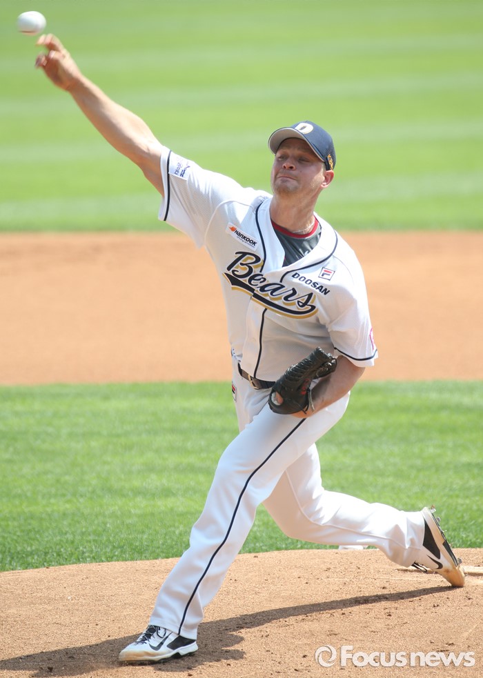 (서울=포커스뉴스) 29일 서울 잠실구장에서 열린 2016프로야구 LG-두산 경기에서 1회초 두산 선발투수 보우덴이 투구하고 있다.