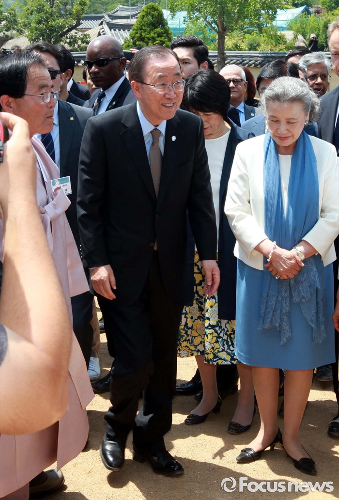 (안동=포커스뉴스) 반기문 유엔 사무총장이 29일 오후 경북 안동시 하회마을을 둘러보고 있다.