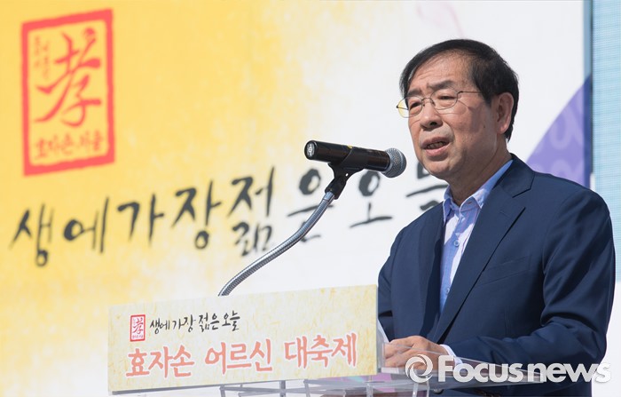 (서울=포커스뉴스) 박원순 서울시장이 29일 오후 서울 종로구 교동초등학교에서 열린 '2016 효자손 어르신 대축제'에 참석해 인사말을 하고 있다.