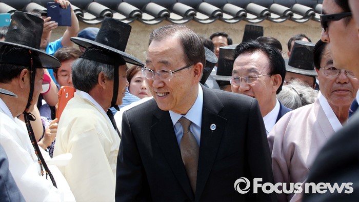 (안동=포커스뉴스) 반기문 유엔 사무총장이 29일 오후 경북 안동 하회마을 충효당을 방문해 시민들과 인사하고 있다.