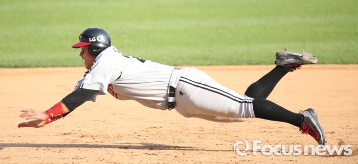 (서울=포커스뉴스) 29일 서울 잠실구장에서 열린 2016프로야구 LG-두산 경기 7회초 무사 2,3루에서 LG 오지환의 중견수 희생플라이때 2루주자 유강남이 3루로 뛰어들어 세이프되고 있다.