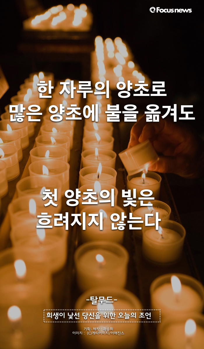 (서울=포커스뉴스) "한 자루의 양초로 많은 양초에 불을 옮겨 붙이더라도 첫 양초의 빛은 흐려지지 않는다."
