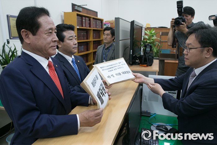(서울=포커스뉴스) 20대 국회 임기가 시작된 30일 오전 서울 여의도 국회 의안과에서 배덕광 새누리당 의원(2호 법안), 박정 더불어민주당 의원(1호 법안)이 각각 법안 서류를 제출하고 있다.
