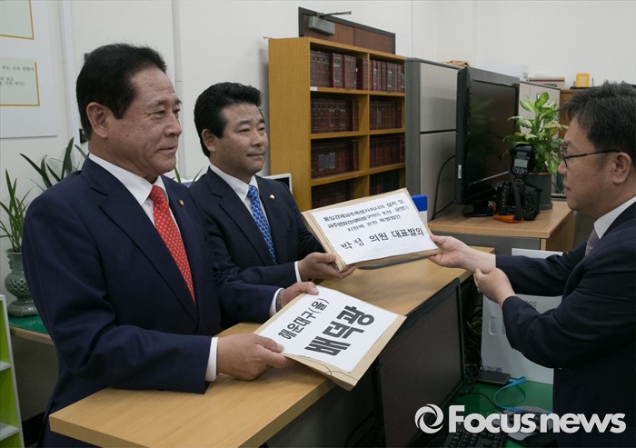 (서울=포커스뉴스) 20대 국회 임기가 시작된 30일 오전 서울 여의도 국회 의안과에서 배덕광 새누리당 의원(2호 법안), 박정 더불어민주당 의원(1호 법안)이 각각 법안 서류를 제출하고 있다.
