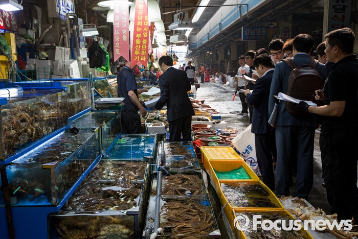 (서울=포커스뉴스) 30일 오전 서울 동작구 구 노량진수산시장에서 서울중앙지법 관계자들이 법원의 점유이전금지가처분을 집행하고 있다. 법원은 이날 영업은 지속하되 수협의 동의없이 가게를 타인에게 이전·전대하면 안된다고 상인들에게 통보 했다.