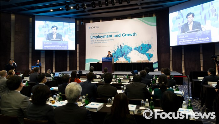 (서울=포커스뉴스) 30일 오전 서울 중구 웨스틴조선호텔에서 열린 2016 한국은행 국제컨퍼런스에서 이주열 한국은행 총재가 개회사를 하고 있다.