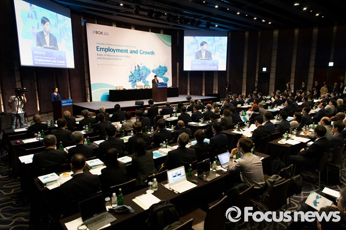 (서울=포커스뉴스) 30일 오전 서울 중구 웨스틴조선호텔에서 열린 2016 한국은행 국제컨퍼런스에서 이주열 한국은행 총재가 개회사를 하고 있다.